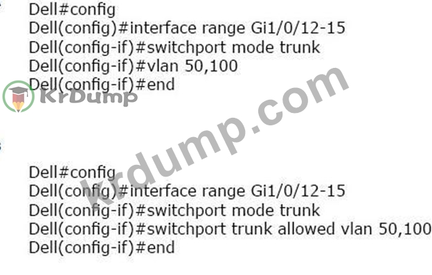 VLAN 50 and 100 are newly added VLANs. These are the only VLANs needed for the ports being configured.