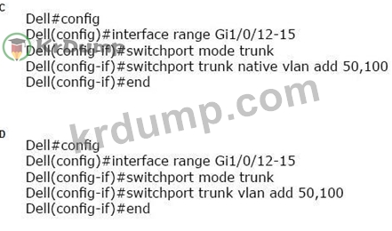 A network engineer is configuring several trunk ports for VLAN 50 and VLAN 100 on an N-Series switch.