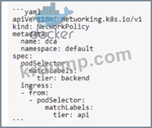 솔루션: tier: api 레이블이 없는 팟(Pod)에서 tier: 백엔드 레이블이 있는 팟(Pod)으로 발행된 요청
