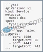 솔루션: 포트 8080의 app:nginx 레이블이 있는 모든 포드의 IP로 전송된 트래픽은 해당 포드의 포트 80으로 전달됩니다.