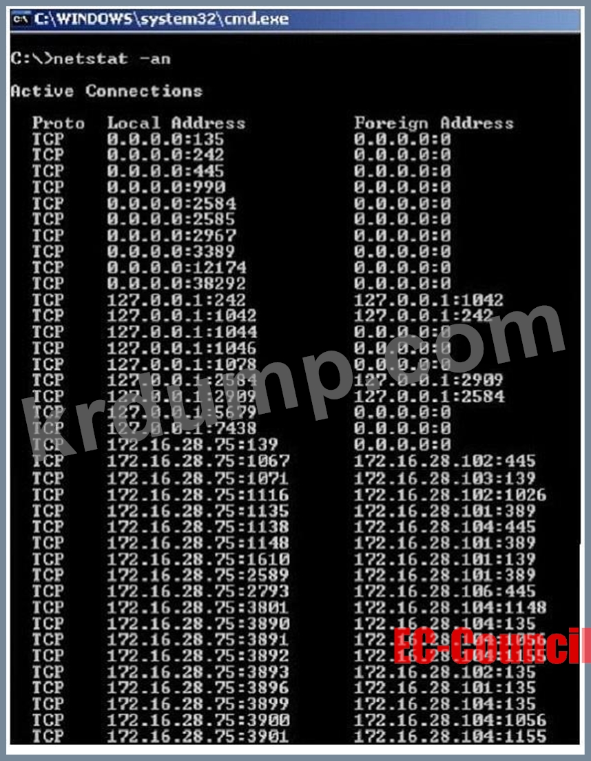 그는 해당 컴퓨터에서 netstat 명령을 실행하여 현재 연결을 확인합니다. 다음 스크린샷에서 0.0.0.0 IP 주소는 무엇을 의미합니까?