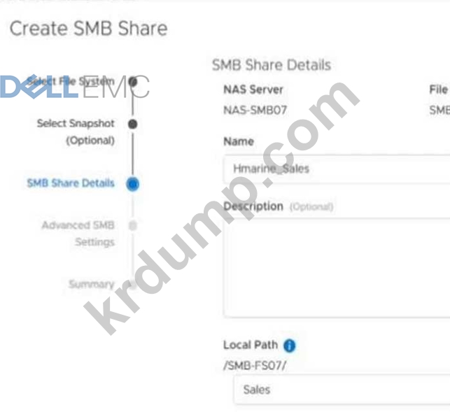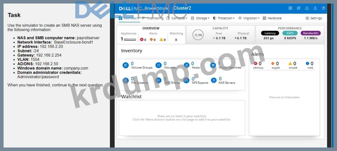 제공된 정보를 사용하여 PowerStore 시뮬레이터에서 SMB NAS 서버를 생성합니다.