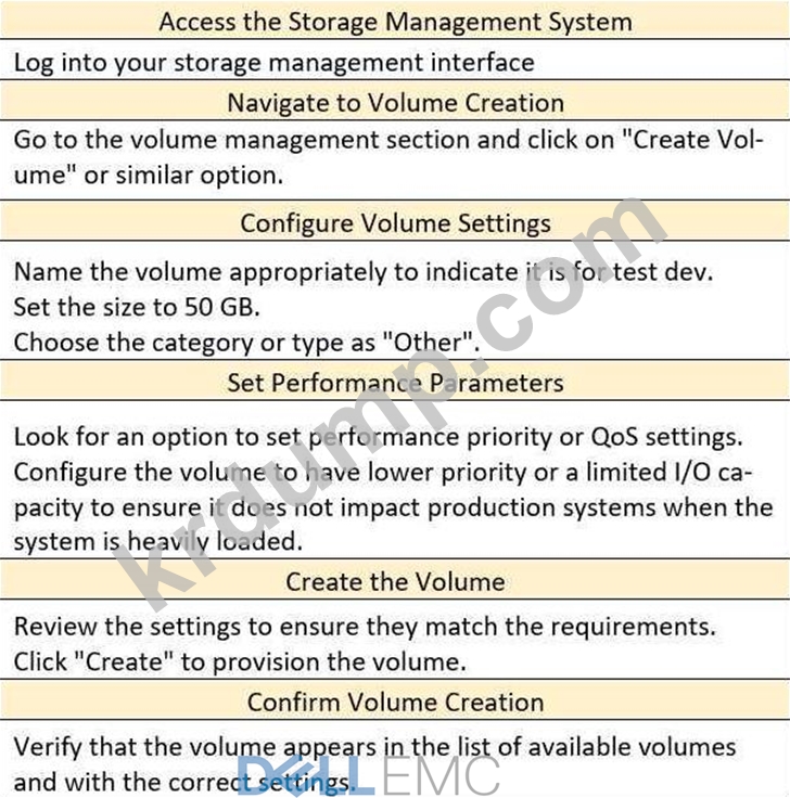 관리자가 새로운 테스트 개발 볼륨을 프로비저닝해 달라는 요청을 받았습니다.