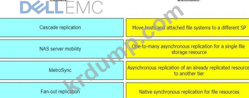 각 Dell EMC Unity 기능을 해당 정의와 일치시키십시오.