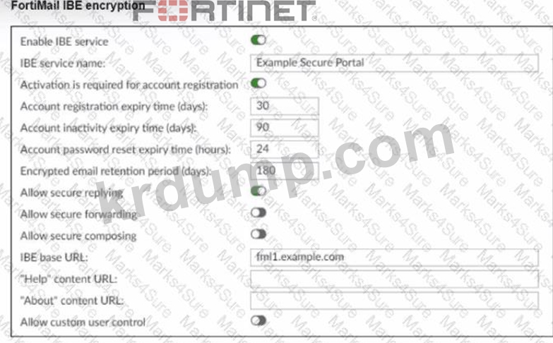 FortiMail 장치의 IBE 암호화 페이지를 보여주는 그림으로 돌아가 보겠습니다. 이 IBE 설정에서 어떤 사용자 계정 동작이 나타날 수 있습니까?