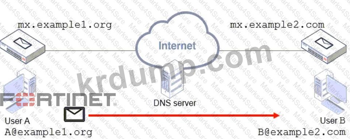 사용자 A가 사용자 B에게 이메일 메시지를 전달하는 방식을 올바르게 설명한 두 가지 문장은 무엇입니까? (두 개 선택)