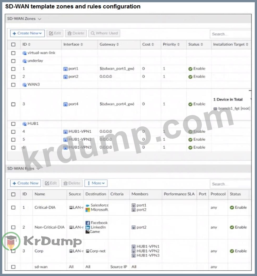 Refer to the exhibits. You use FortiManager to configure SD-WAN on three branch devices.