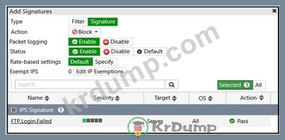 Refer to the exhibit. Review the intrusion prevention system (IPS) profile signature settings shown in the exhibit.