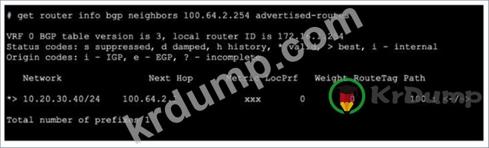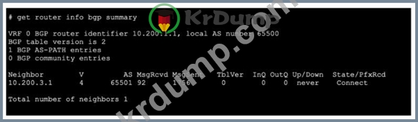 Refer to the exhibit, which shows the output of getrouterinfo bgp neighbors100.64.2.254.