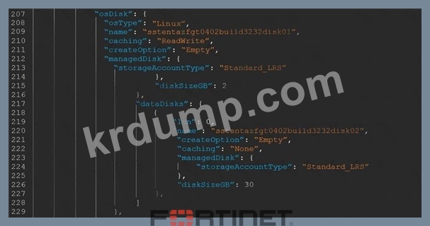 JSON 템플릿을 사용하여 Microsoft Azure에서 FortiGate-VM을 배포하려 했지만 부팅에 실패했습니다. 전시회는 JSON 템플릿에서 발췌한 내용을 보여줍니다.