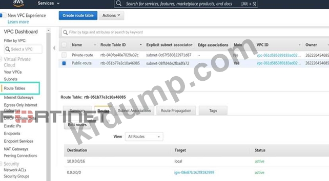 또한 EC2 인스턴스 소스 IP 주소가 퍼블릭 인터넷에 노출되지 않도록 해야 합니다. 동일한 가용 영역의 이 VPC에는 퍼블릭(10.0.0.0/24) 및 프라이빗(10.0.1.0/24)이라는 두 개의 서브넷이 있습니다.