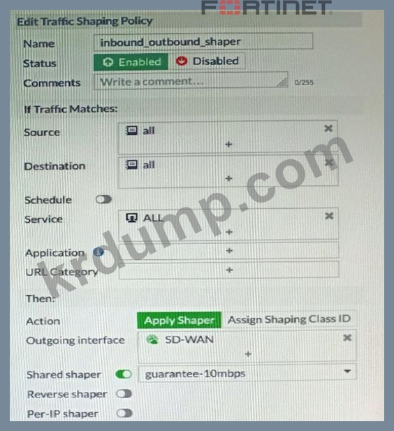 트래픽 셰이핑 정책은 모든 아웃바운드 트래픽에 적용되지만 인바운드 트래픽은 셰이핑 정책에 의해 평가되지 않습니다. 전시회를 기반으로 트래픽 셰이핑이 인바운드 트래픽에 적용될 수 있도록 하려면 어떤 정책에서 구성을 변경해야 합니까?'