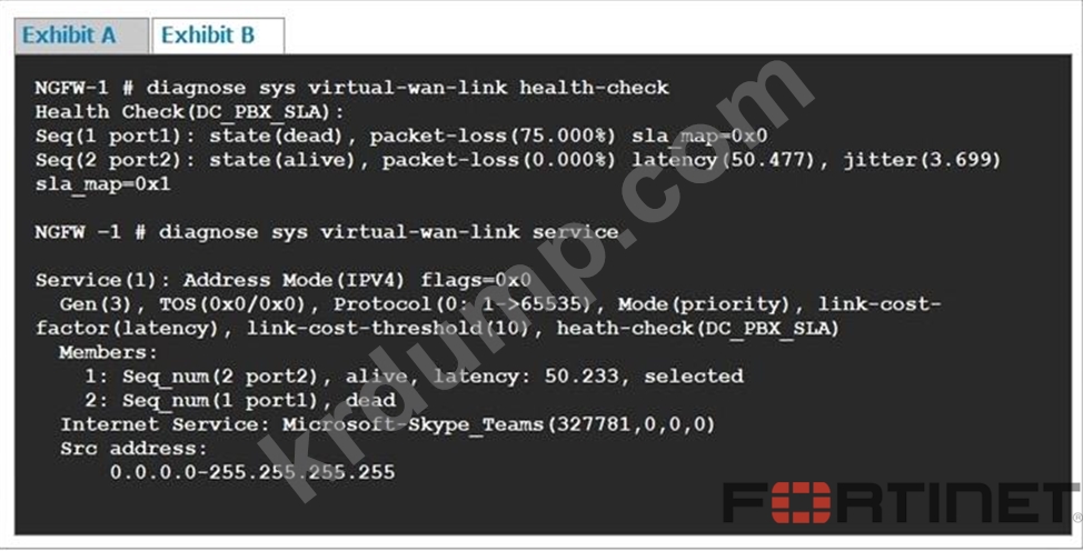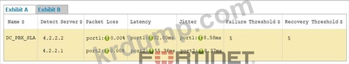 자료 A는 성능 SLA를 보여줍니다. B는 SD-WAN 진단 결과를 보여줍니다.