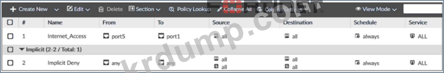 그림을 바탕으로, FortiGate는 포트 2를 통과하는 트래픽에 대해 어떤 두 가지 작업을 수행합니까? (두 가지 선택)