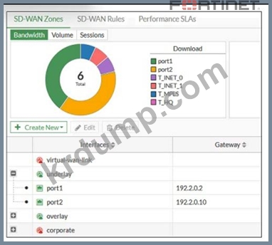 FortiGate GUI에서 SD-WAN 영역 구성을 보여주는 그림을 참조하세요.