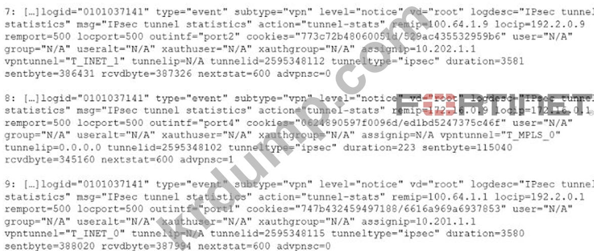 이 그림은 FortiGate의 VPN 이벤트 로그를 보여줍니다. 그림에 표시된 출력에서 다음 중 참인 것은 무엇입니까?