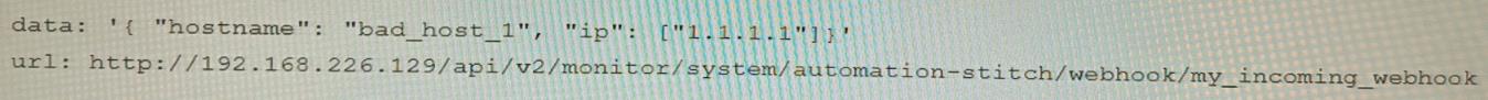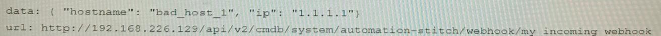 'my_incoming_webhook'이라는 트리거로 수신 웹훅을 사용하여 자동화 스티치가 구성되었습니다. 해당 작업은 다음과 같은 CLI 스크립트를 실행하도록 구성되었습니다.