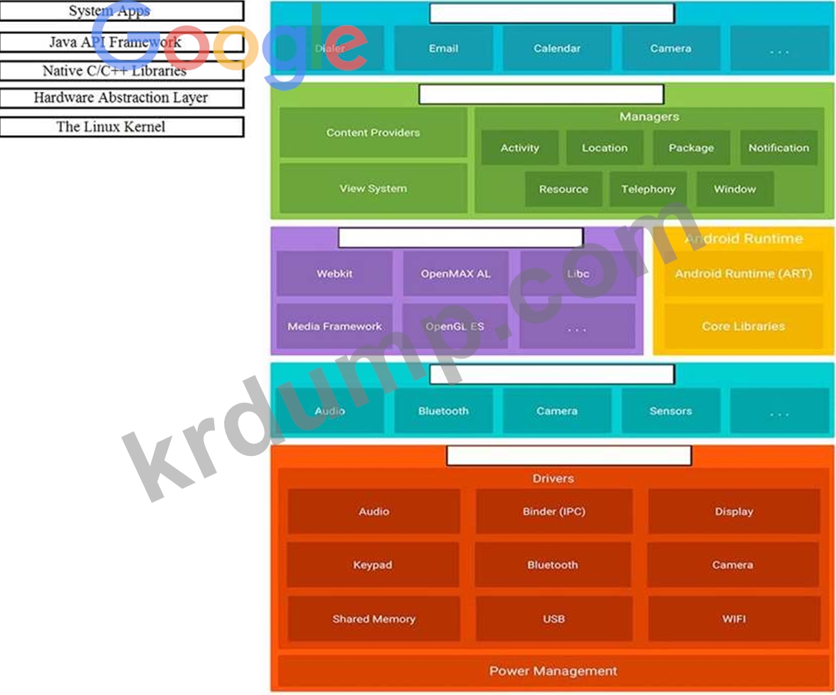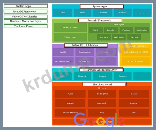 Android 플랫폼의 주요 구성 요소를 다이어그램의 올바른 위치로 이동합니다.