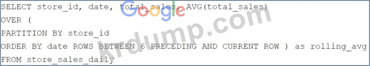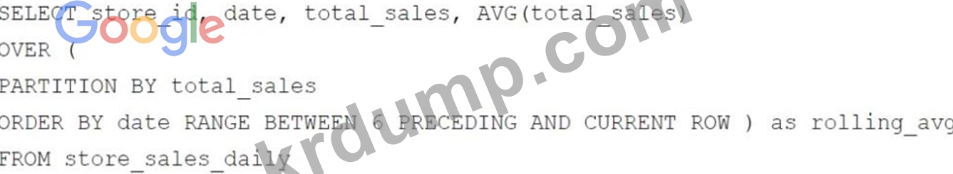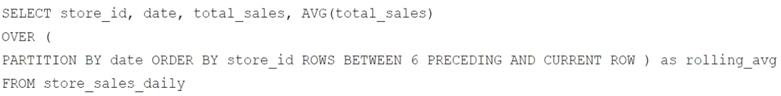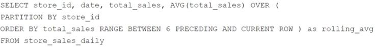 회사에 여러 개의 소매점이 있습니다. 회사는 각 매장의 일일 총 매출을 추적합니다. SQL을 사용하여 각 매장의 매출 추세를 파악하기 위해 매장별 주간 이동 평균 매출을 계산하려고 합니다. 어떤 쿼리를 사용해야 할까요?