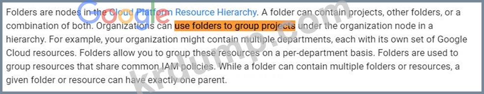 귀하의 조직은 많은 팀으로 구성되어 있습니다. 각 팀에는 많은 Google Cloud 프로젝트가 있습니다. 조직에서 이러한 프로젝트에 대한 ID 및 액세스 정책 관리를 단순화하려고 합니다.