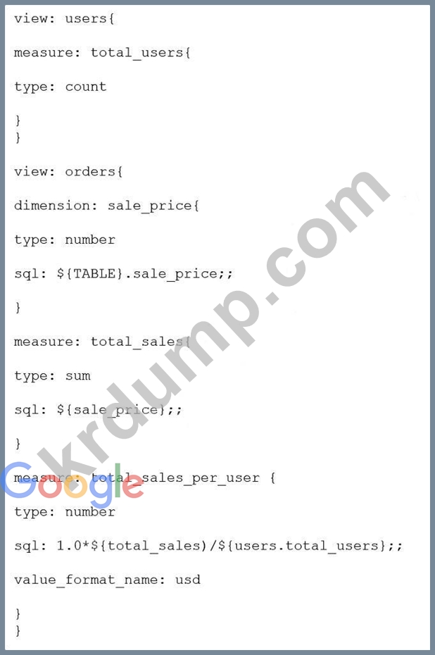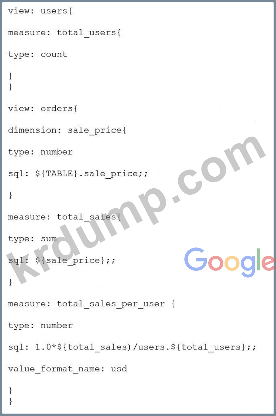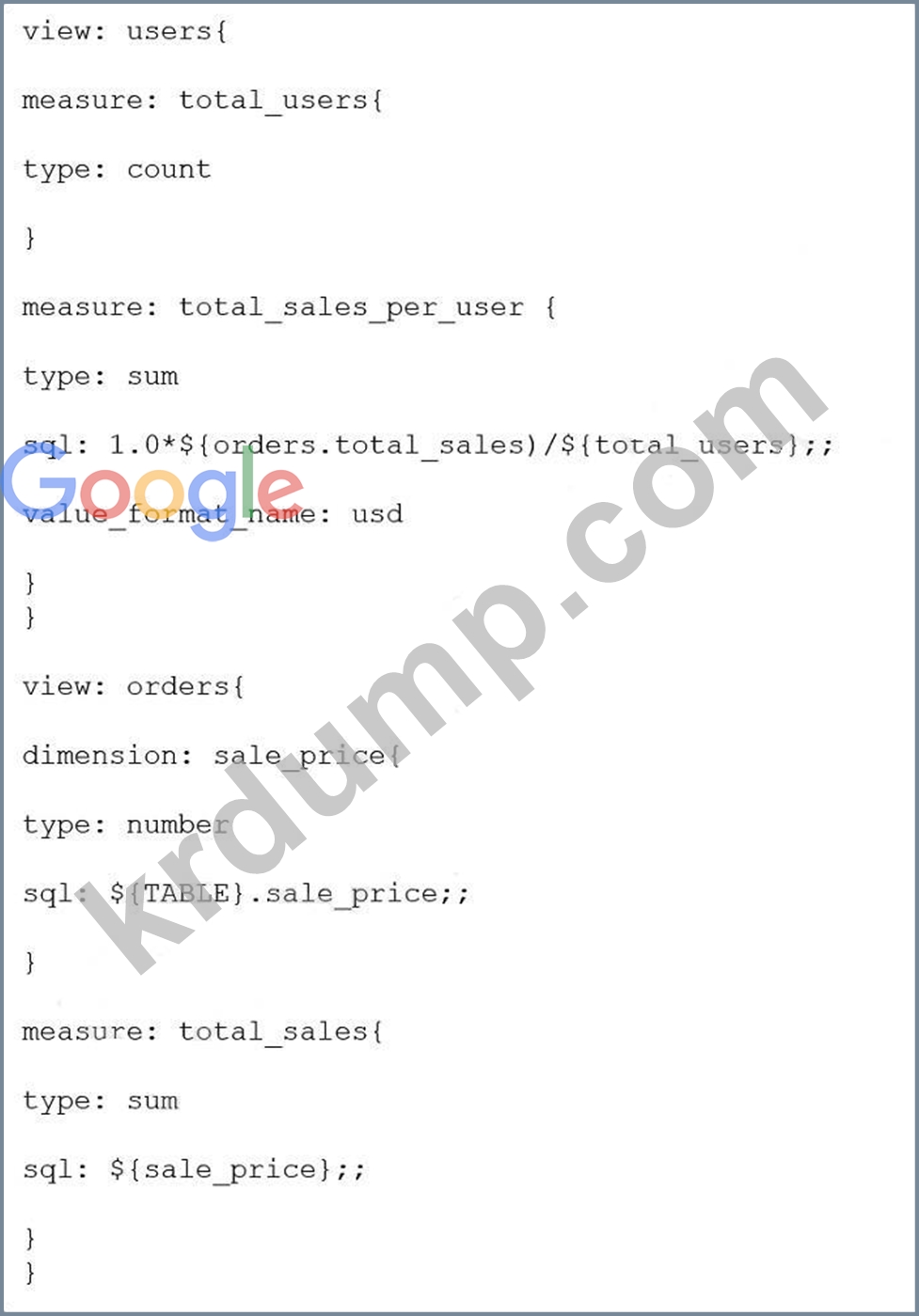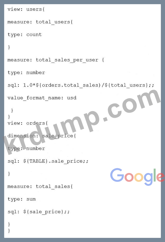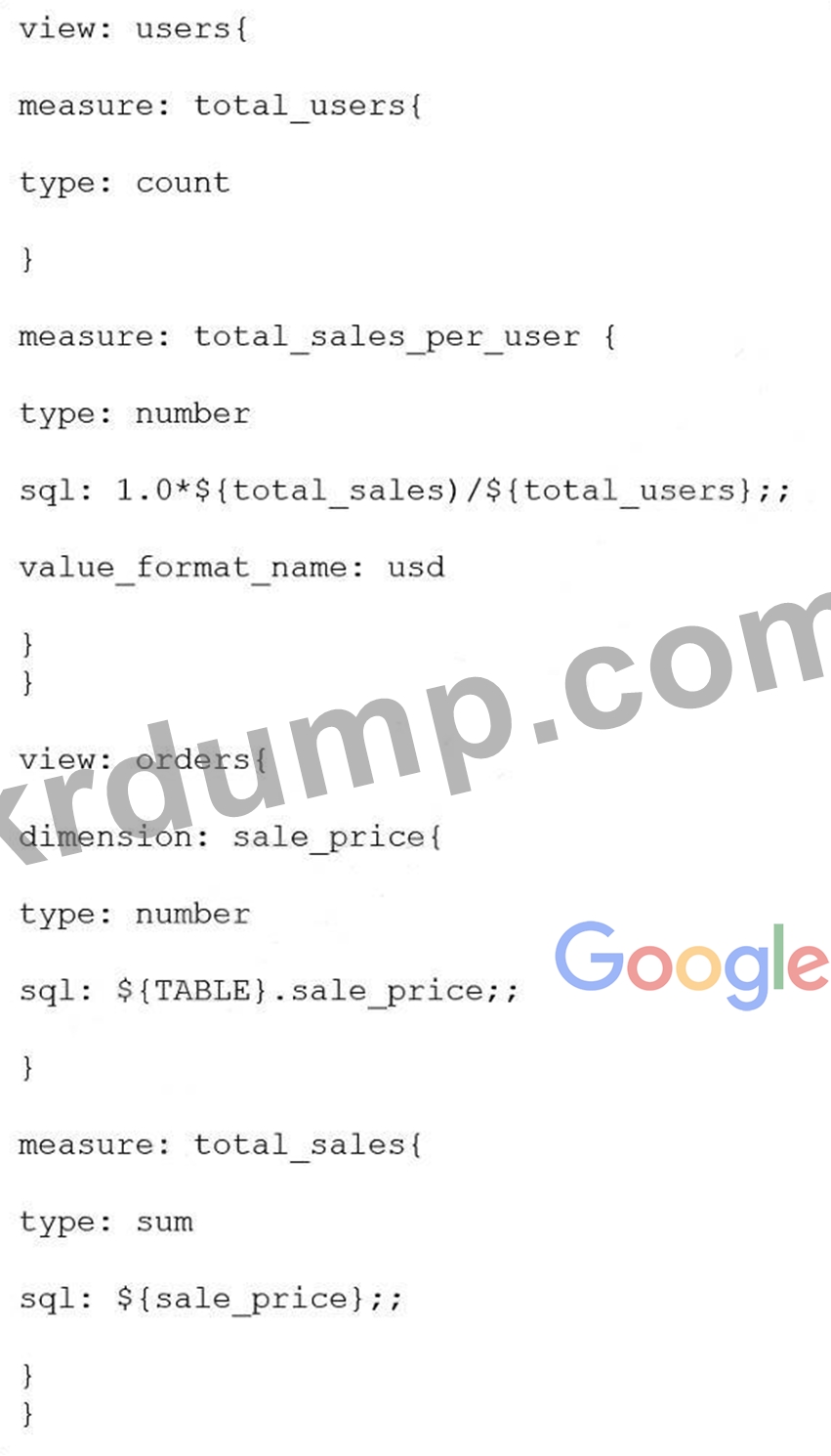 개발자는 주문 보기의 총 매출과 사용자 보기의 총 사용자 비율을 계산하려고 합니다.