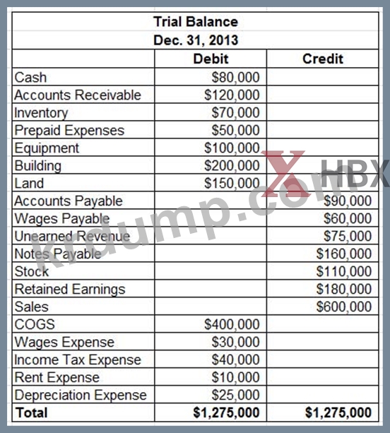 2013년 12월 31일 회사의 시산표는 다음과 같습니다.