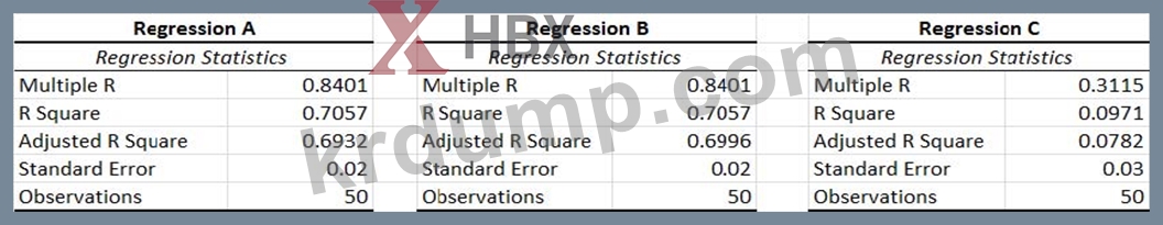 세 회귀 모두에 대한 회귀 통계는 아래에 나와 있습니다. 이러한 통계를 바탕으로 가장 정확한 예측을 얻기 위해 기관은 어떤 모델을 사용해야 합니까?
