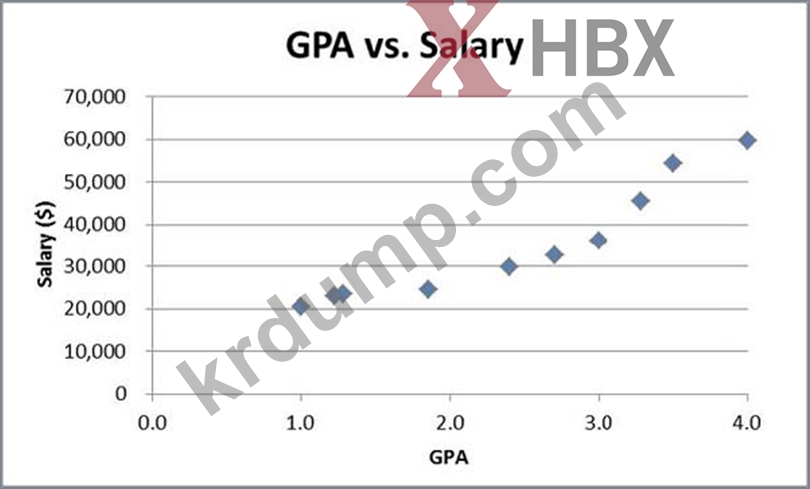 아래 산점도를 기반으로 할 때 다음 상관 계수 중 학부 GPA와 초봉 사이의 관계를 가장 잘 설명하는 것은 무엇입니까?