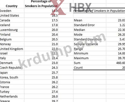 아래 데이터는 한 국가의 인구 중 흡연자 비율의 표본입니다.