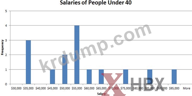 한 개인이 40세 미만 15명을 대상으로 현재 급여를 물어봅니다. 결과 히스토그램은 아래와 같습니다.