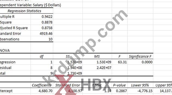 아래의 다중 회귀 출력을 기반으로 유의 수준이 가장 높은 변수를 선택합니다.