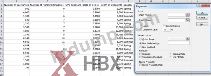 아래 데이터를 기반으로 Excel 회귀 입력 범위에 맞는 올바른 열을 선택하세요.