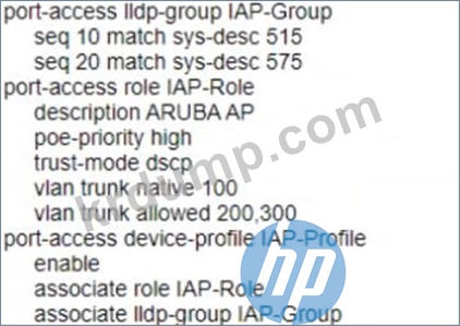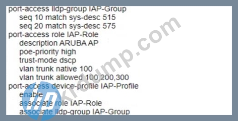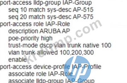 시스템 엔지니어는 원격 사무실로 보낼 여러 대의 Aruba CX 6300 스위치를 사전 구성해야 합니다. 교육을 받지 않은 현지 현장 기술자가 스위치의 롤아웃과 여러 대의 AP-515 및 AP-575S의 설치를 담당합니다. AP로 연결되는 케이블에는 라벨이 부착되어 있지 않습니다.