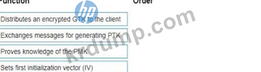WPA 4-Way Handshake 기능을 올바른 순서대로 나열하세요.