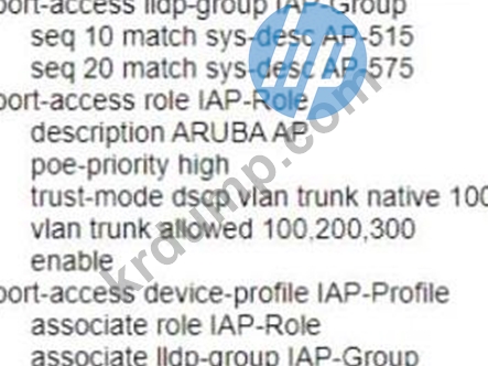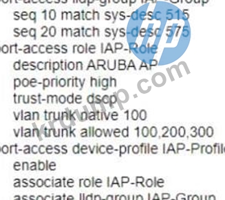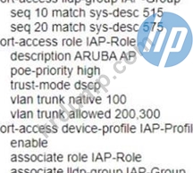 시스템 엔지니어는 원격 사무실로 보낼 여러 대의 Aruba CX 6300 스위치를 사전 구성해야 합니다. 교육을 받지 않은 현지 현장 기술자가 스위치의 롤아웃과 여러 대의 AP-515 및 AP-575S의 설치를 담당합니다. AP로 연결되는 케이블에는 라벨이 부착되어 있지 않습니다.