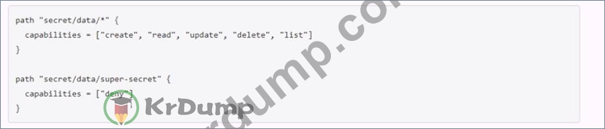 The key/value v2 secrets engine is enabled at secret/ See the following policy: