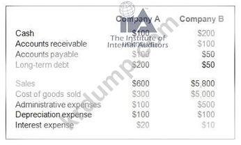 아래는 회사 A와 B에 대한 일부 연말 재무제표 데이터(달러 금액에서 000 생략)입니다.