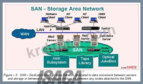 저장. SAN은 주로 디스크 어레이, 테이프 라이브러리 및