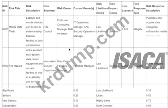 다음은 조직의 정보 보안 부서에서 관리하는 최근 승인된 IT 위험 등록부의 스냅샷입니다.