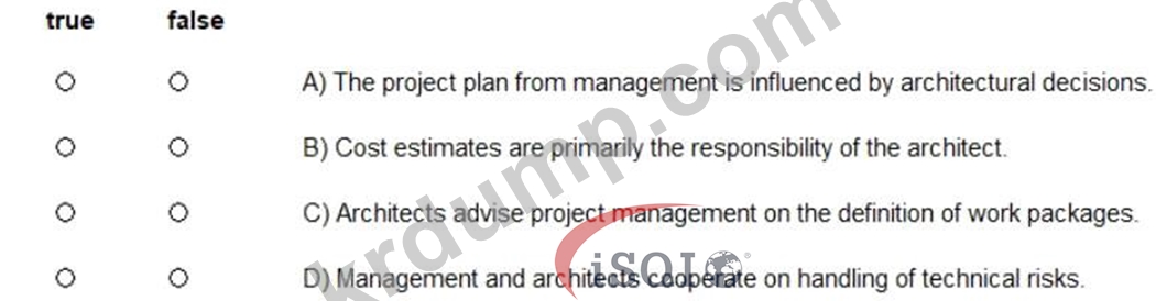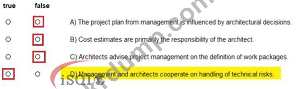 경영진과 건축가는 어떻게 협력합니까? 어떤 진술이 참이고 어떤 것이 거짓인지 결정하십시오.