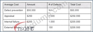다음과 같은 품질 비용 수치를 모았습니다. 출시 전에 1,000개의 결함이 발견되었고 출시 후에 100개가 발견되었습니다.