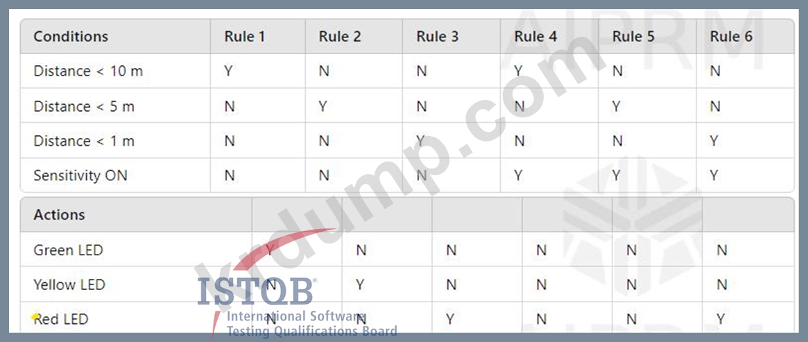 다음 결정표는 이 근접 경고 시스템의 작동과 관련된 규칙을 설명합니다.