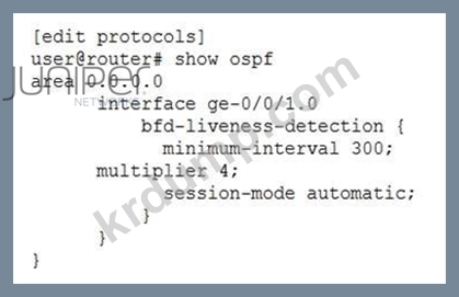 전시회를 참조하면 인터페이스 ge-0/0/1.0이 다운된 것으로 간주되기까지 몇 밀리초가 경과해야 합니까?