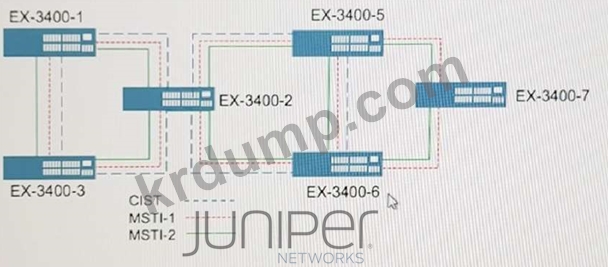 MSTI-1 및 MSTI-2를 서비스하기 위해 새 EX3400 시리즈 장치를 네트워크(EX-3400-7)에 추가할 계획입니다.