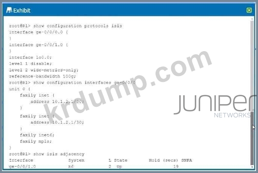 IS-IS를 실행하도록 인터페이스 ge-0/070.0을 구성했습니다. 그러나 이 인터페이스는 전시회에 표시된 것처럼 show isis adjacency 명령의 출력에 나타나지 않습니다.
