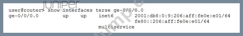 동료가 IPv6 주소 2001:db8:0:9::/64로 ge-0/0/0 인터페이스를 구성합니다. 구성을 커밋한 후 동료는 그림에 표시된 명령을 실행합니다.