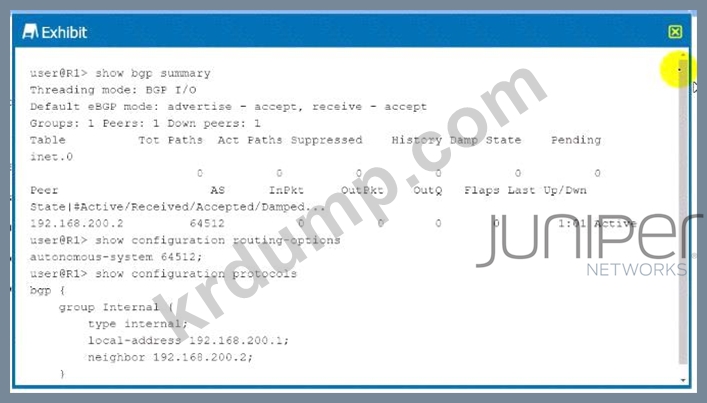 그림을 참조하면 R1과 R2 사이의 내부 BGP가 설정되지 않습니다.