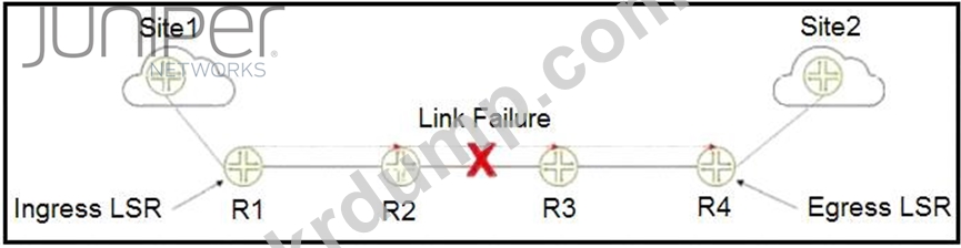 그림을 참조하면 R2와 R3 사이에 링크 장애가 발생하면 R1과 R4 사이에 RSVP LSP가 설정됩니다.