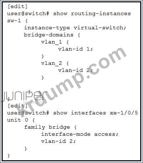 가상 스위치에 인터페이스 xe-1/0/5를 할당하라는 메시지가 표시됩니다. 구성을 완료하려면 무엇을 해야 합니까?