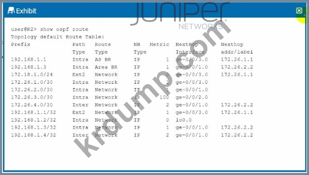 그림에 표시된 출력에서 어떤 접두사가 OSPF 라우터에서 삽입된 외부 접두사입니까?